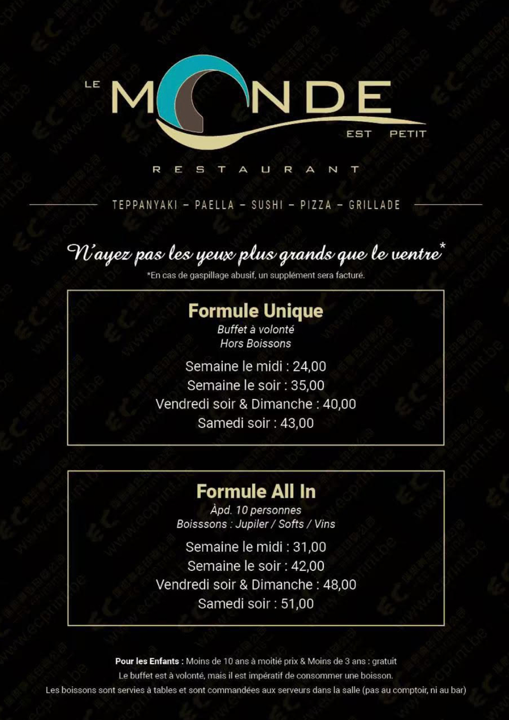 En cas de gaspillage abusif, un supplément sera facturé.